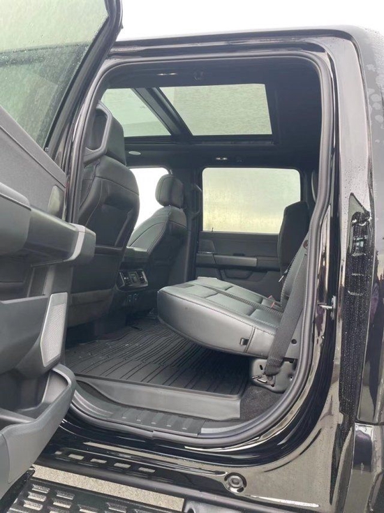 福特猛禽第三排座椅腿部空间确实给力,就是头部空间比较局促,毕竟在货斗上安了一排座椅,座椅位置就偏高,所以离车顶也是正常现象,不过这种设计有一个好处就是视野很棒,可以坐在第三排看到前挡风的视野,有种剧院式的效果。第三排座椅比第二排软,坐着更舒服。