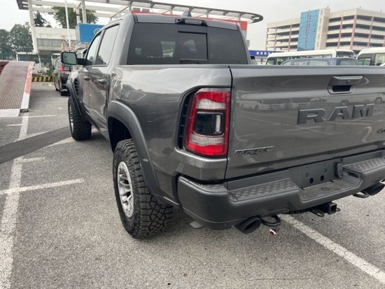 2022款道奇公羊霸王龙极具冲击感,前倾式车头,相较中规中矩的家族设计无疑多了几分对路面的侵袭感,眼神中没有透露出一丝的活泼神韵唯一展现出来的只有凶狠,前杠是铁质前杠带拖钩,散发这金属气息,沉稳大气,作为最畅销的车型拥有着极富侵略性的前脸。