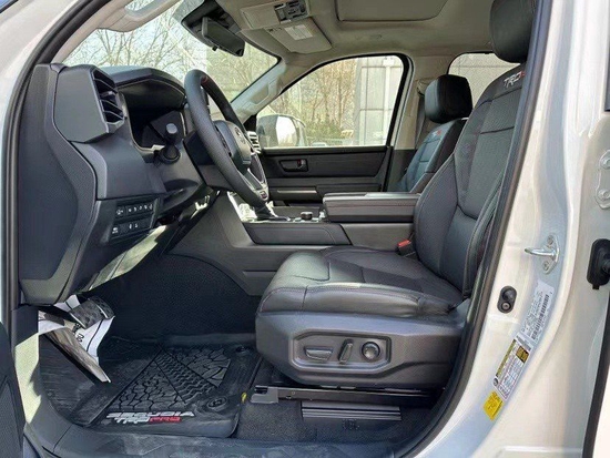 内饰方面:2023款丰田红杉车内采用了大量软质材料包裹,部分区域还加入了缝线处理,显得档次感和质感十足。另外车内采用的是四辐式多功能方向盘,并保留了很多物理按键,足以满足驾驶时想要的操控感,车内的科技氛围是通过12.3英寸的全液晶仪表盘和14英寸的中控屏来实现的,中控屏两侧的空调出风口,虽然没有采用时下流行的贯通式设计,但在中控台上对称排列也别有一番风味。另外顶配Capstone车型的内饰将会采用更加豪华的黑白配色方案,并搭配胡桃木装饰面板。