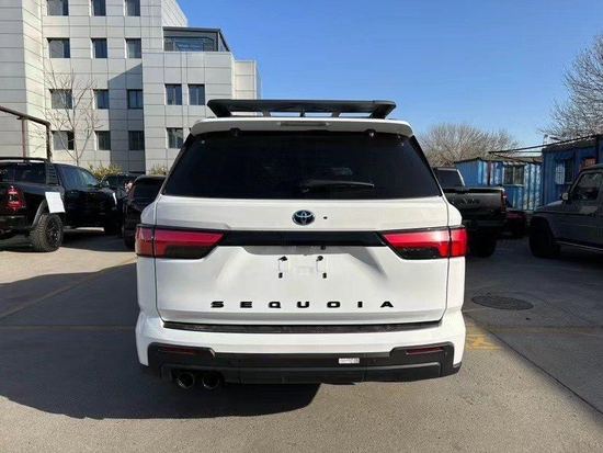 外观方面:2023款丰田红杉的前脸看起来和坦途基本一样,特别是大尺寸的横向进气格栅以及两侧的L形大灯组,不过格栅和下包围并未像坦途那样是相连的,但却显得车头更加霸气,而且还增加了些层次感。此外,全新红杉还提供了另外两种前脸样式可选,包括蜂窝网状设计以及熏黑波浪形并搭配了“TOYOTA”标识的进气格栅造型。另外,车头上的雾灯组都设计在下方护板上,点亮后有很高的辨识度。