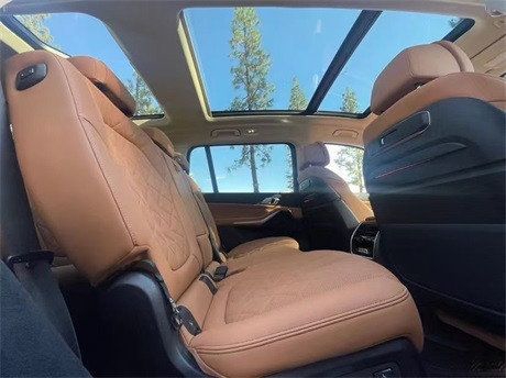 23款宝马X7做工用料上采用了大量真皮以及金属木纹材料进行装饰,凸显出内在的奢华感。内饰方面,中控台部分还使用了大量的木饰,真皮座椅纹理是经典高贵的菱形纹理,无论是前排还是后排,包裹性都非常好,坐上去也会觉得非常舒适,车内很多地方都有X7的标志。