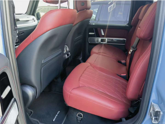 22款奔驰G63豪华精致的真皮包覆提供了足够的舒适性和支撑性,通风和加热功能让乘客免受高温和寒冷的煎熬。中控台多处均采用碳纤维材料覆盖,带彩色TFT显示屏的AMG仪表盘、AMG主菜单和单独的挡位显示器以及采用白色照明的AMG门槛。名贵的选材及精湛的内装令人拍案叫绝。