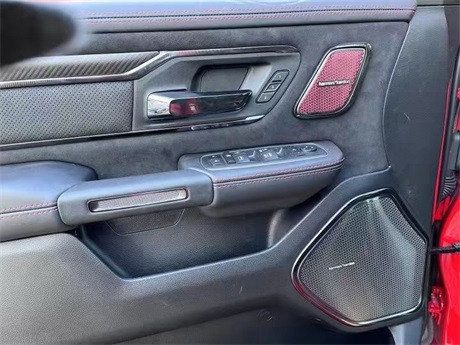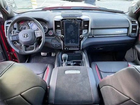 2022款道奇霸王龙在内饰部分进一步强化了其高性能版本的形象,中控台和座椅随处可见的TRX标识便是最好的例证。同时,作为道奇家族的旗舰车型,新车还配备了12英寸竖置中控屏幕,除了支持蓝牙、导航和车载Wi-Fi等常见功能,还支持Apple CarPlay和Android Auto手机映射。
