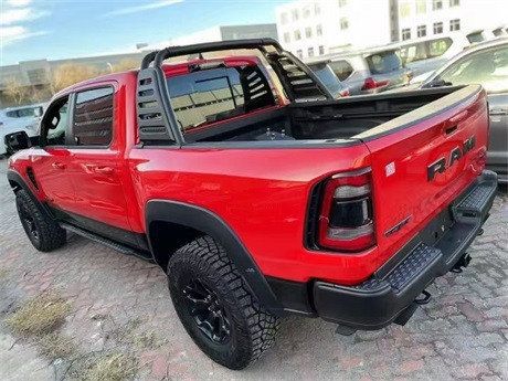 2022款道奇霸王龙除了强大的动力外,性能版的Ram 1500TRX和越野性同样是一流的,车辆从地板的间隙达到了28cm,接角是30.2,出发角是23.5,通过角是21.9,涉水高是81.28cm,可以对应大部分区间,另外,新车搭载了来自Bilstein的自适应减震器,前后轮的行程达到了33/36cm。