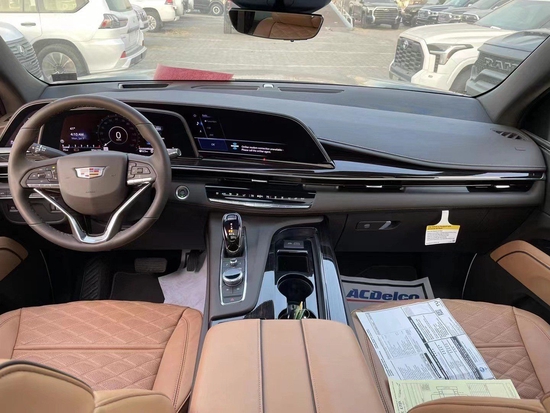 2022款凯雷德内饰方面:内饰依然沿袭家族风格,后舱内饰极尽奢华私人订制版质感爆棚。前舱BOSE环绕立体声音响,搭载主动降噪技术,收音机、CD、MP3,高清卫星收音机,凯迪拉克家族最新增强版中控CUE娱乐系统及8寸导航屏幕,蓝牙系统,12英寸液晶仪表可构建显示及驾驶员信息中心,高清全彩抬头显示系统,皮质方向盘,加热方向盘,方向盘带控制中心,按键启动,遥控启动,无钥匙方便进入,前舱两座12向奢华拼皮座椅,附带座椅通风加热功能!