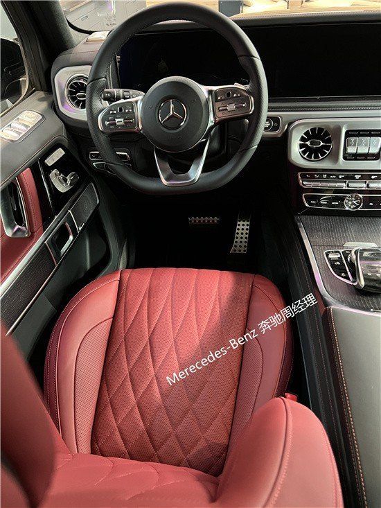 2022款奔驰G500相比老款G系,新款奔驰G500前脸造型圆润了许多新款保险杠更加精致看起来更加结实。中网改为镀铬落空的设计,奔驰标志性的实心车标表明了这辆车搭载有ACC自适应巡航以及360换车影响。环影20轮,4.0T,V8,9速,天窗,前排MB:13真皮座椅通风5203加热按摩,后778座椅加74热全液晶仪表几何光束大灯,LED日行灯,64色氛围灯,自动空调,柏林之声音响,三把差速锁倒影前后电眼,雷达测距,并道辅助,脚踏,后视镜电动折叠。