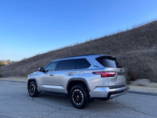 丰田红杉车内的科技氛围是通过12.3英寸的全液晶仪表盘和14英寸的中控屏来实现的,中控屏两侧的空调出风口,虽然没有采用时下流行的贯通式设计,但在中控台上对称排列也别有一番风味。全新一代23款丰田红杉作为一款有着悠久历史的SUV车型,丰田红杉颜值一直很在在线,前脸大气的进气格栅,四周由银色饰条进行包裹,配合中间的logo标识,辩识度非常的强,棱角分明,