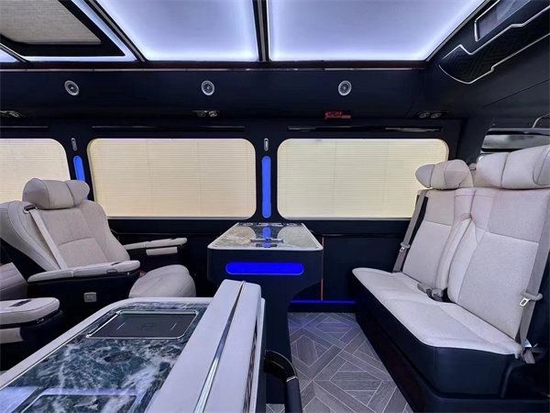 丰田考斯特改装商务车的设计的设计不仅仅只是体现您的高贵身份,更是为了给给您的商务旅途带来方便,因此在设计上我们更考虑了您在办公中的所有需求。在车顶处添加LED灯,方便您在旅途中观看书籍或者工作材料。