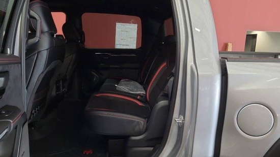 2022款道奇1500霸王龙内饰全部选用了真皮和翻毛麂皮绒包覆,座椅拥有加热、按摩等舒适性的功能,每个座椅都拥有独立的调节控制手柄,可供乘员自己独立控制;并且前排的座椅相比较于其它皮卡车型来说,更加运动,包裹性更好,也和极具冲击力的外观看起来更加搭配!