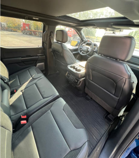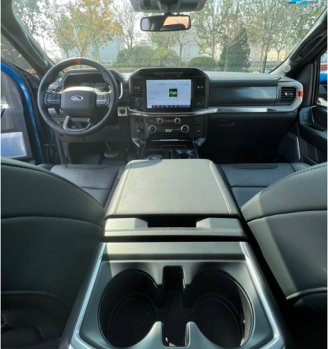 22款福特猛禽内饰采用独特的中控台和门饰板面漆和真皮包裹的方向盘。中控台部分辅以银色饰板装饰,六指针仪表盘的设计有些后工业时代的复古风格。