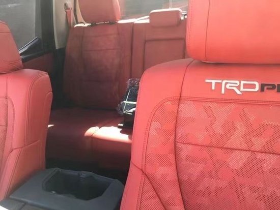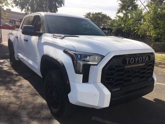 22款丰田坦途 TRD PRO 白/红 配置:标配:混合动力,437匹马力,越野悬挂,并道辅助,18寸铝轮,TRD铝制防滑器,14英寸中控显示屏,带12个扬声器的JBL音响,无线充电,12.3英寸液晶仪表显示屏,8项电动调节主副驾驶座椅,电动全景天窗。选配:TRD PRO尾部标识,空气过滤器。