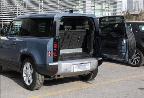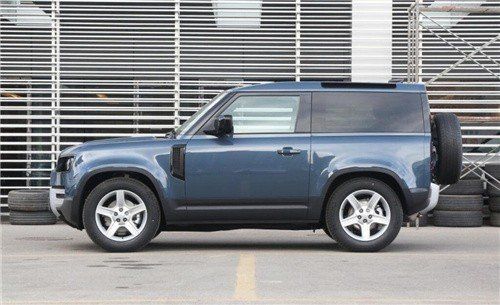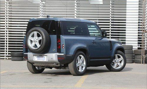 路虎卫士的车头依旧使用了方方正正的设计元素,方形前灯组内有半圆形光源,前进气格栅的造型设计十分简洁并带有经典的“LAND ROVER”绿色logo,前机盖边缘的“DEFENDER”车型标志也得到了保留,前保险杠下部带有大面积的银色护板,整个前脸的层次感分明,也显得非常厚重。