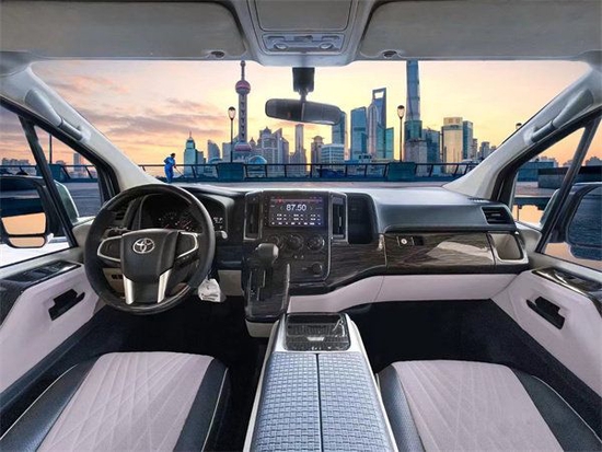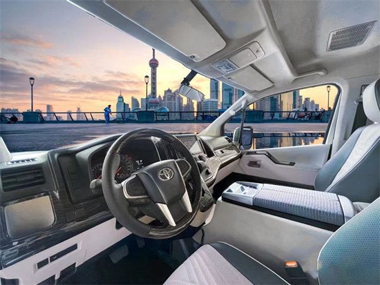 这款丰田海狮商务车配色设计同样是偏向简约大气的米色配色,驾驶仓部分采用大量超纤真皮的包覆设计以及大量的桃木件装饰,彰显豪华的档次与层次感。