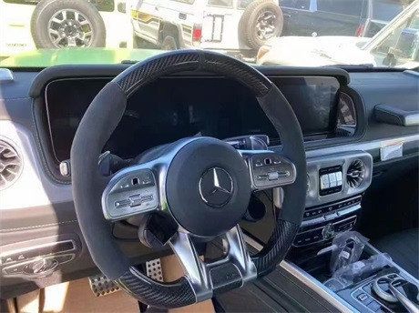 2022款奔驰G63内饰方面,奔驰的设计绝对可以用惊艳来形容,无论是经典车型还是超豪华车型甚至是入门级的豪华车上,奔驰的内饰都会让你眼前一亮,当然了这也是奔驰的一个特色。所以这部全新的G63在内饰的表现上也是情理之中的,但是细节上还是有些小小的意外。这种感觉是打开车门的瞬间就能够感受到的。首先仪表和中控屏依旧是采用了同一款液晶屏显示,第一感觉就是科技感爆表。而其他方面例如方向盘,空调出风口,挡杆等等的设计充满设计感。