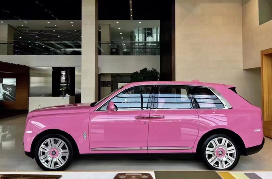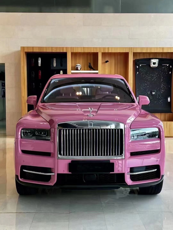 劳斯莱斯库里南夏末清爽一下,红色 紫色大家都看过了,今天带来一款小清新,满满的粉色少女心。你看,它来了。这辆粉色的库里南侧面在线条的作用下看起来非常修长,前面的大灯和格栅,显得整个车十分高大威猛,搭配上粉红色皮肤,威猛的外表下也有一颗少女的心。