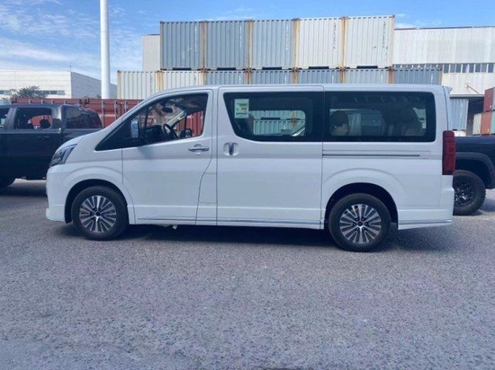 丰田Granvia外观方面,基于丰田HIACE打造的Granvia在外观上进行了优化。相比外观更“素”的HIACE,丰田Granvia采用了“大嘴式”的前格栅,并加入了更多镀铬饰条,以此体现豪华感。同时,新车的头灯也采用了全LED式的设计,相比HIACE更具科技感。