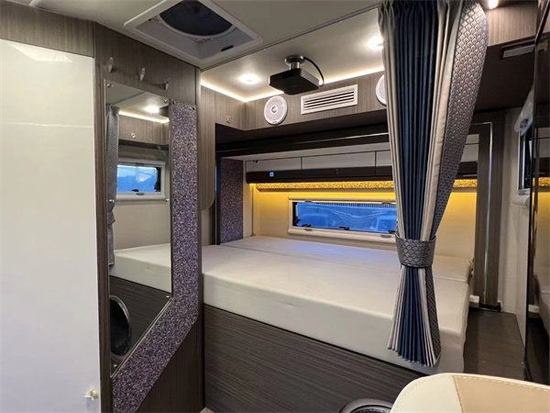 额头床区域的空间极大,上、左、右共布置了三扇窗户。超大尺寸天窗的加入,让车内的采光表现更好,内部更具有通透感。额头床下方还采用翻折的方式集成了一台40寸智能电视,搭配进口富声音响系统,为您带来无与伦比的娱乐体验。---180++1775++1185