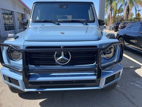 2022款奔驰G550外观极其高调,新车的线性做工体现出一种非常强悍的运动气息,古典优雅而不失霸气的感觉是这款新车给人的第一感觉,它有三个方形的进气口在前面保险杠的位置,轮圈采用黑色设计,和整个车身交响呼应。