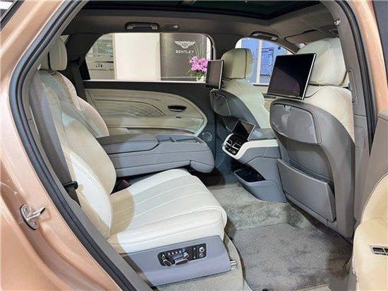 23款宾利添越加长全新样式的三辐式多功能方向盘,整体质感良好,中控台中央悬浮式液晶屏设计,上方圆形出风口是宾利独有的“牛眼式”出风口设计。此外,重新校准的全景天窗后移125毫米,并可通过后舱触屏式遥控装置和前排中控台进行操控。
