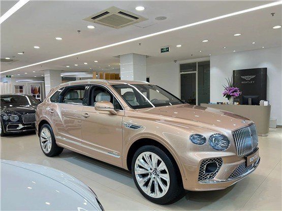 23款宾利添越加长车身轮廓很大气,采用了前倾式的D柱,后翼子板位置的线条有一个拐角的设计。新车的侧面的底部是和车身相同颜色的包围,它采用了电镀风格的车轮毂,造型很大气。