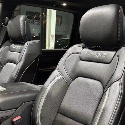 道奇霸王龙的内饰全部选用了真皮和翻毛麂皮绒包覆,座椅拥有加热、按摩等舒适性的功能,每个座椅都拥有独立的调节控制手柄,可供乘员自己独立控制;并且前排的座椅相比较于其它皮卡车型来说,更加运动,包裹性更好,也和极具冲击力的外观看起来更加搭配。