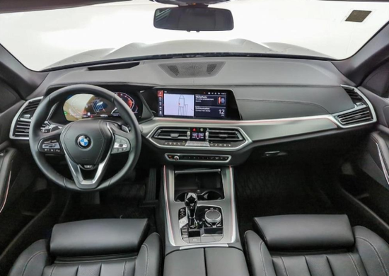 22款宝马X5内饰设计更高档,采用三辐式多功能方向盘设计,仪表盘跟宝马X7 (配置|询价)基本一致,采用无框后视镜设计,中控台底部还配备了无线充电功能。中控功能键盘也重新设计,中控出风口中间还配备了一块小尺寸液晶屏,上面显示一些空调温度和风量。出风口两侧的风量滑轮更精致。