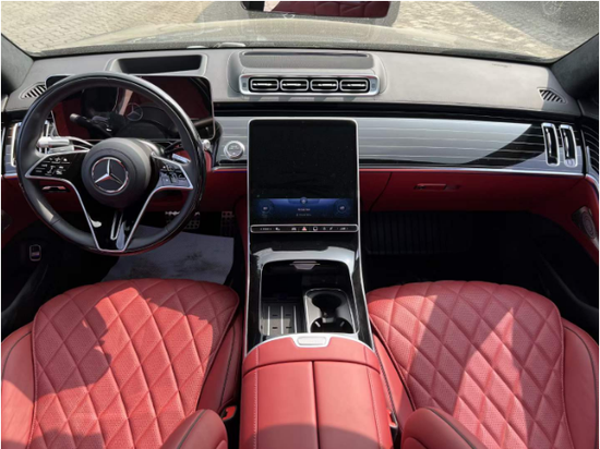奔驰S580采用了三幅式的全新造型的方向盘,新车的中控台上采用了钢琴烤漆面板装饰,上面采用了多条横向的白色装饰条点缀。采用了悬浮式的纵置大屏,液晶仪表采用了悬浮式的风格。