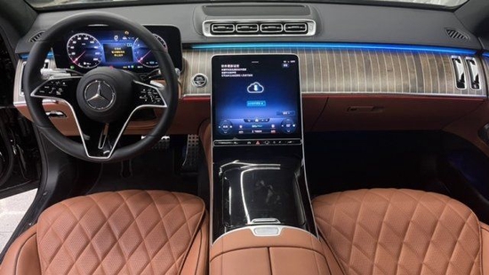 22款奔驰S500的中控台垂瀑式中央触控屏从中控台纵向延伸,凸显出了简约的设计感。整个内饰的豪华感当然是无须质疑,触手可及之处几乎全用上了皮革包裹,配合带263个LED单元的动态氛围灯进一步升华了内饰氛围感。AMG Line的方向盘通过对造型的重新雕塑,变得更加立体。