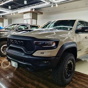 22款道奇霸王龙,皮卡中的“兰博基尼”,集肌肉与力量于一身的越野怪兽,搭载着地狱猫同款6.2 V8机械增压发动机,8速手自一体变速箱,虽然其车重将3吨,但这吓人的动力输出依然能将这台大家伙用4.5秒从0加速到100公里每小时