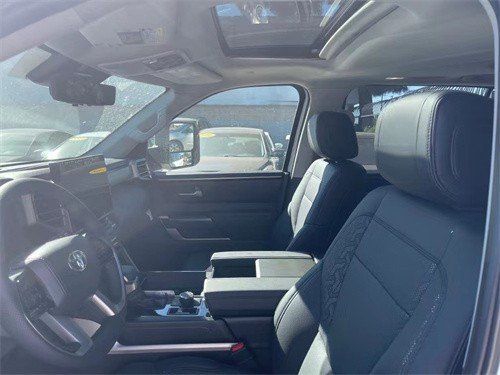 23款丰田红杉车内采用了大量软质材料包裹,部分区域还加入了缝线处理,显得档次感和质感十足。另外车内采用的是四辐式多功能方向盘,并保留了很多物理按键,足以满足驾驶时想要的操控感,车内的科技氛围是通过12.3英寸的全液晶仪表盘和14英寸的中控屏来实现的,中控屏两侧的空调出风口,虽然没有采用时下流行的贯通式设计,但在中控台上对称排列也别有一番风味。另外顶配Capstone车型的内饰将会采用更加豪华的黑白配色方案,并搭配胡桃木装饰面板。