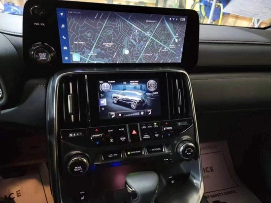 2022款雷克萨斯LX600采用了对称式中控台设计,继续提供液晶仪表和HUD抬头显示等配置,并首次加入双屏显示器,该中控屏由12.3英寸的上屏和7英寸的下屏组成。另外,车辆启动按钮被设置在了中控屏一侧,并首次配备了指纹识别。