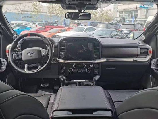 福特猛禽车内配备标准独特的皮革和布艺装饰的座椅,驾驶员侧的电动十向调节。这些座椅同时具备记忆功能。中央控制区搭配了触控式显示屏,其下方则是多媒体控制区及空调面板采用旋钮物理按键的组合。中控功能区域可分为三个小控制区,最上端为音响控制及导航控制。