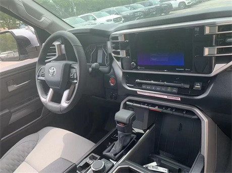 22款丰田坦途的内饰设计也采用了新设计风格,“硬”还是第一感受。无论是平直的线条还是灰白的用料配色,车内的风格都是非常偏向于越野,宽大的悬浮式液晶中控屏幕也是挺抢眼的,功能上也丰富了在线车联网以及CarPlay车机互联功能。