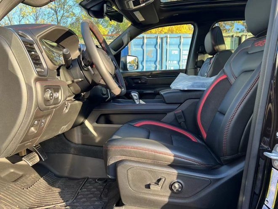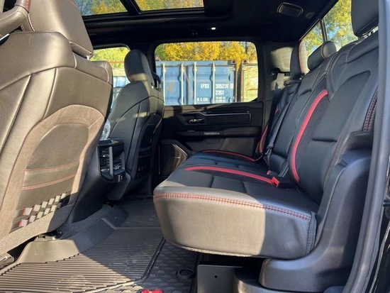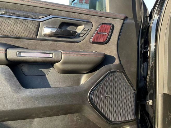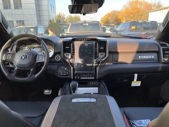2022款道奇公羊霸王龙TRX在内饰部分进一步强化了其高性能版本的形象。此款配置的车型属于红黑双拼的。主副驾12项电动调节并带有加热和通风功能。主驾带有记忆。