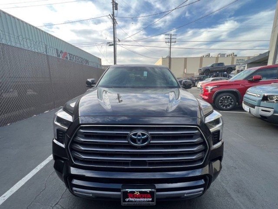 丰田红杉的前脸看起来和坦途基本一样,特别是大尺寸的横向进气格栅以及两侧的L形大灯组,不过格栅和下包围并未像坦途那样是相连的,但却显得车头更加霸气,而且还增加了些层次感。