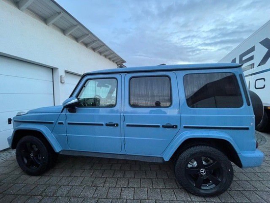 奔驰G350d 22款 柴油 瓷器蓝/黑 配置:18轮熏黑运动轮毂 天窗 宽屏 停车包带环影 多光速LED 带阻尼悬挂系统 雷达测距
