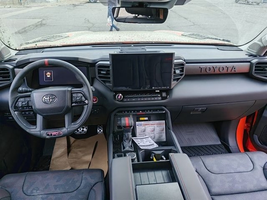 丰田坦途采用悬浮式中控大屏设计,中控屏从低配版8英寸到顶配版的14英寸,并且还提供有12.3英寸的全液晶仪表盘可供选择,支持CarPlay和 Android Auto系统。值得一提的是,新车全系标配Toyota Safety Sense 2.5智行安全系统,具备拖挂模式、蠕行模式、越野模式等多种驾驶模式。