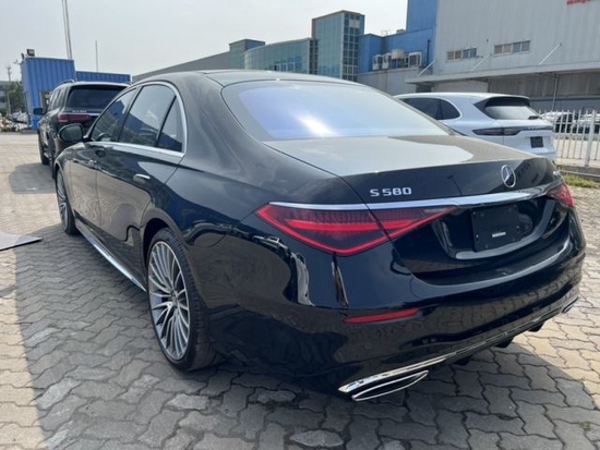 奔驰S580它的前脸相比现款车型发生了很明显的改变,全新奔驰S级 (配置|询价)的前脸轮廓显得更饱满,新车的进气格栅采用了多边形造型,进气格栅上继续采用三条横向的镀铬条和一条纵向的镀铬条装饰,它的进气格栅造型看上去比现款车型更饱满大气。