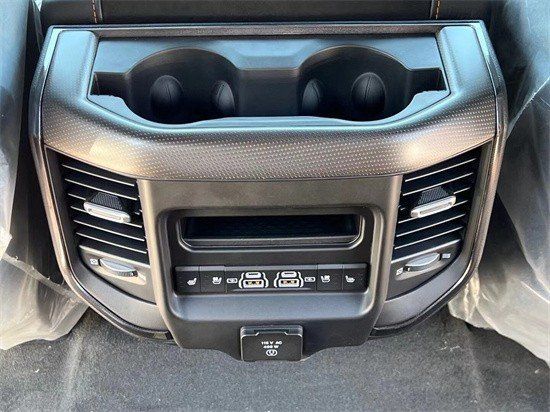 2022款道奇公羊霸王龙中控台的设计简洁硬派,符合公羊的气质,仪表盘底边有花纹,则更加凸显了这款车的文雅性,软性材质的仪表台设计,摸上去手感非常舒服,并无些许生硬之处。