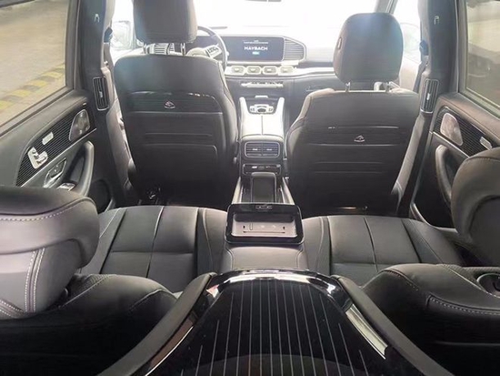 奔驰迈巴赫GLS600提供四座布局,四座车型第二排独立座椅相比普通版GLS更加靠后,并且带有巨大的腿拖,其后排座椅最大倾斜角度大43.5度,后排腿部空间最大达1.34米。中央由冰箱、控制台、储物空间和手机无线充电台等进行贯穿,呈现出类似于迈巴赫S级 (配置|询价)一样的头等舱设计。