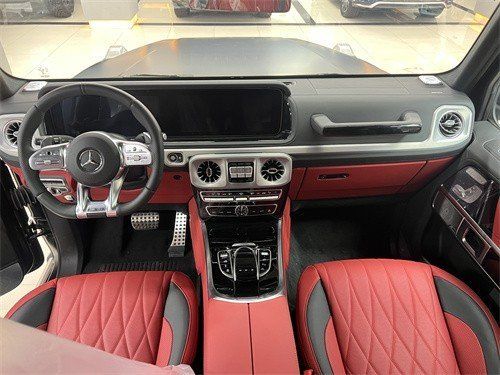 奔驰G63AMG内饰方面,新G63保留了新G500的整体设计,除配色差异外,新车还换装了全新造型的底式AMG运动方向盘,其两侧配以打孔皮质包裹,下部镀铬装饰的造型也与新G 500明显不同,看上去十分战斗。此外,全液晶仪表盘 中控大屏的双12.3英寸屏幕设计在新车上也没有缺席,营造出了浓郁的科技感。