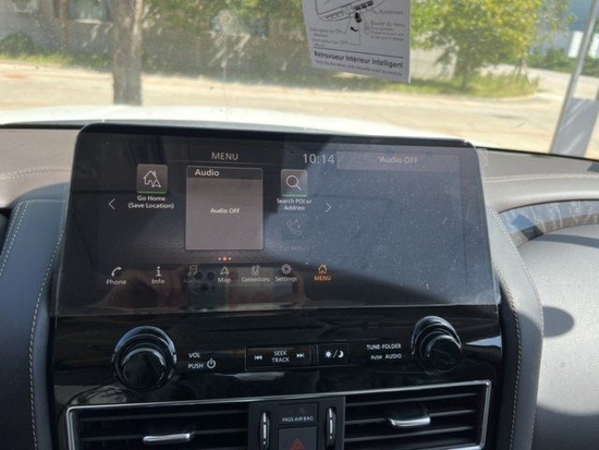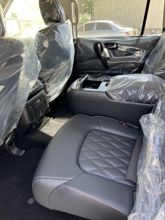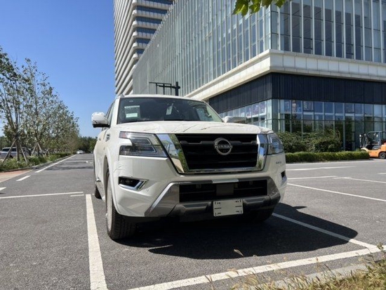 22款尼桑途乐5.6极具冲击力的外观造型给我们带来了更强的视觉冲击力,正面上,我们仍旧看到,尺寸上比上代版本更大,传统的横杠式中网也全部换成了这种点阵式造型,这点设计绝对是这款车的加分项。