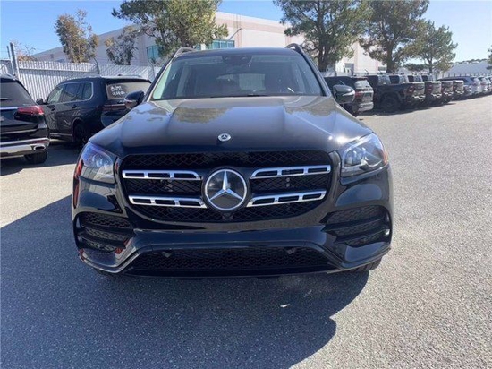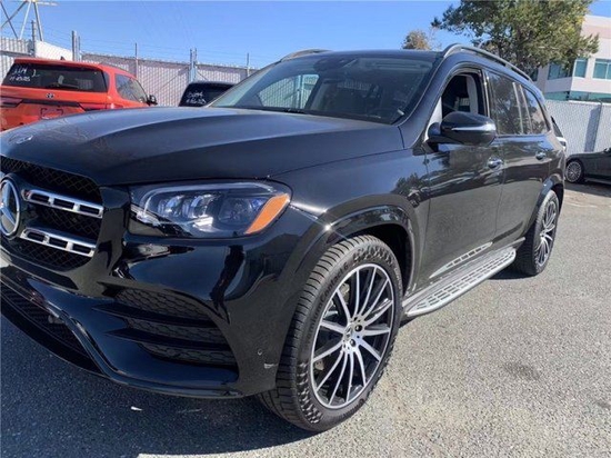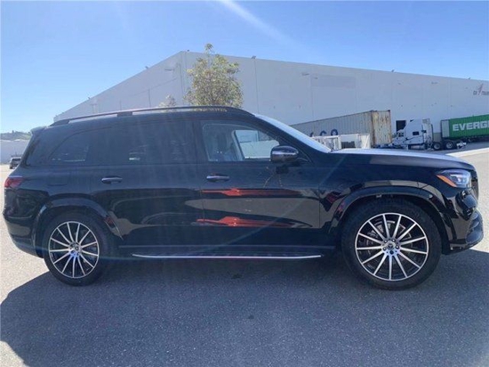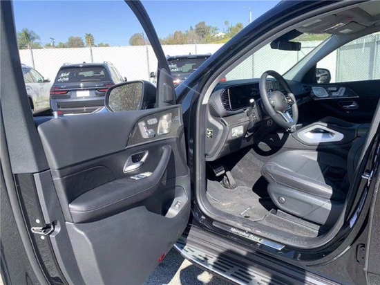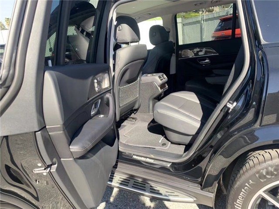 2023款平行进口奔驰GLS450 (配置|询价)侧身线条简洁流畅,车顶配备了行李架,电吸门和铝制踏板,提高了上下车的便利性,大尺寸的轮毂透露出了运动风范。