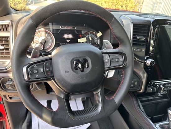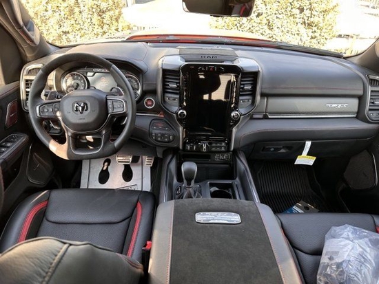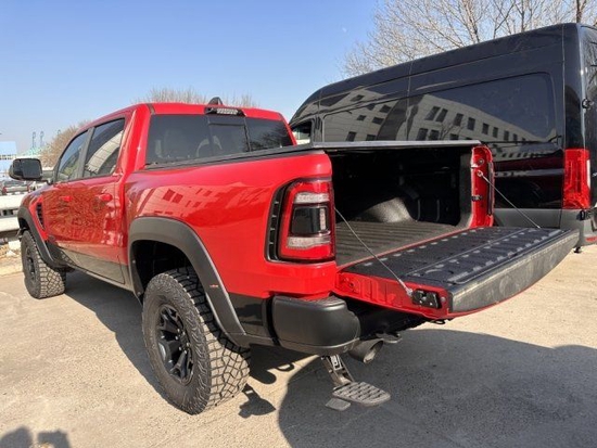 外观方面,新车传承了道奇Ram家族高大威猛的造型设计,同时细节部分融入了更多高性能元素,包括经过黑化处理的前格栅,引擎盖两侧的黑色进气口,以及为了容纳巨大的机械增压器而设计的通风口等等。此外,新车还配备了视觉冲击力更强的黑色轮眉和外露式的拖车钩,看上去十分霸气。