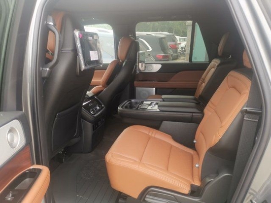 22款林肯领航员的内饰非常奢华,多功能方向盘,中控台的造型与宽大的车身相呼应,新车全部真皮包裹座椅,内饰采用桃木搭配设计,高贵典雅,加高加大的车身除了增加内部空间外,还给人营造一种尊贵典雅的感觉。最新林肯领航员新车采用了2+2+3的座椅布局,第二排采用了两个独立座椅,座椅内侧均配有扶手,舒适度超强。