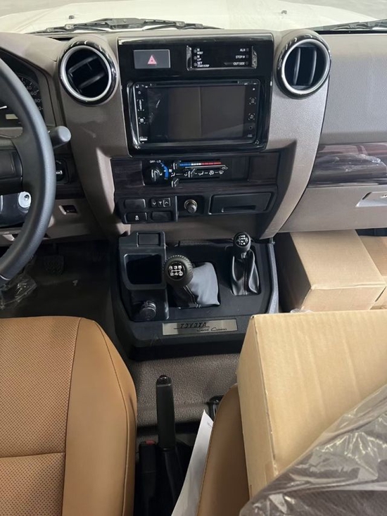 这辆酷路泽的车内部分,驾驶室精简明了,导航屏幕的安装使得它偏向于现代化汽车设计,内饰复古桃木面板很经典,圆形的空调出风口很直接,车内配置也有很多,当然这些配置都是为了越野服务的电子配置并不多,因为电子配置太多会影响它的可靠性。