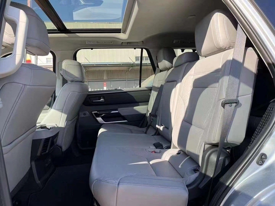 外观方面:全新一代23款丰田红杉拥有一个非常庞大的身躯,采用了隐藏式的A、B、C柱设计,营造出悬浮式车顶的样式,外后视镜壳还有银色与黑色可选,提升了该车的时尚感。另外,新车腰线贯穿整个侧面,并在前后翼子板处采用内凹式设计,营造出了极其宽厚的视觉效果,再搭配六螺栓孔固定的20英寸密条辐轮圈,整体搭配展现出了陆上霸主的气息。