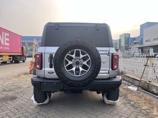 福特烈马Bronco采用了趋于平直的车顶线条,从而获得更好的车内头部空间,同时,贯穿式腰线的使用,也让新车看上去更具层次感,另外,前后侧翼子板微微突出车身,搭配车门下方内凹式的设计,再加上大尺寸轮毂,看上去四平八稳。车尾部分,新车配备了外挂式后备胎,两侧尾灯采用竖状的设计,点亮后效果十分出色,黑色外凸的后保险杠设计很有越野范。