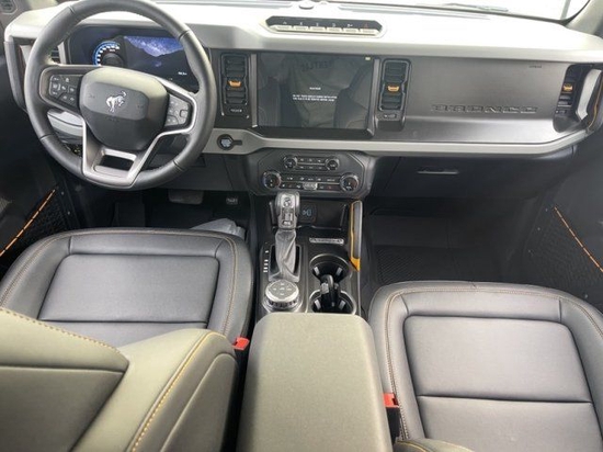 全新22款福特烈马Bronco车内采用硬朗的设计风格,中控台设计主次分明且有层次感,用料也厚实,多功能方向盘造型运动,中控屏幕采用内嵌式的设计增添了车内的时尚感,按键布局合理,档把设计精致,座椅宽大厚实,空间宽敞,实用性强。