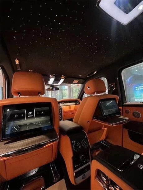 2023款劳斯莱斯库里南内饰整齐的风格,很有英国皇室的设计感觉,不仅奢华还相当大气,也不会让人觉得过度炫耀。整体内饰都运用高档的真皮覆盖,在舒适度和档次上都十分出色,在副驾驶座前还镶嵌一块石英表,彰显了属于劳斯莱斯特有的贵族气质。全新的全液晶仪表盘采用三圆仪表设计,辅以虚拟表盘和指针,适用现代科技完成复古风格。